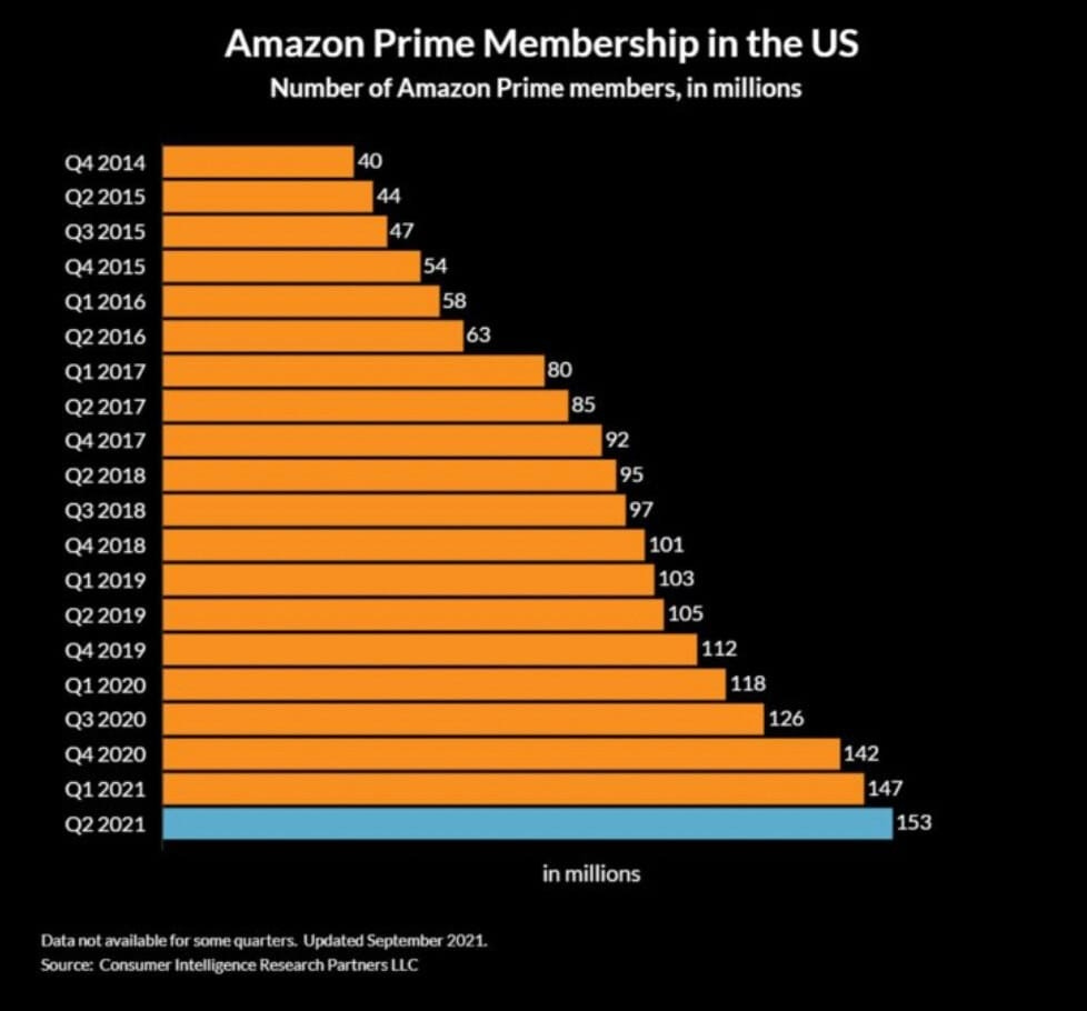 153 millones de miembros Prime en los Estados Unidos. (+29 mil YOY)