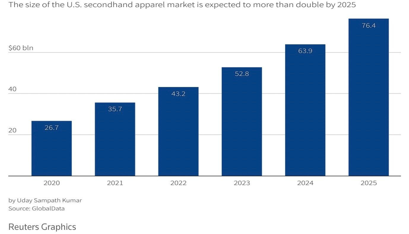 ♻️ Se estima que el sector de reventa de ropa creció desde los 9.000 millones hasta los 43.200 millones de dólares en 2021, según GlobalData, y se estima que crecerá aún, 11 veces más, la tasa del mercado de prendas de vestir sin reventa en los próximos cuatro años. RaaS - Resale as a service o cómo los players del ReSale están trazando nuevos caminos para el crecimiento en 2022.