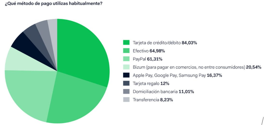 💳 Sobre las formas de pago en eCommerce en España. El 30% de los consumidores españoles prefiere un método de pago con opción de compra a plazos, aunque la tarjeta de crédito y la de débito continúan siendo las opciones de pago más utilizadas.