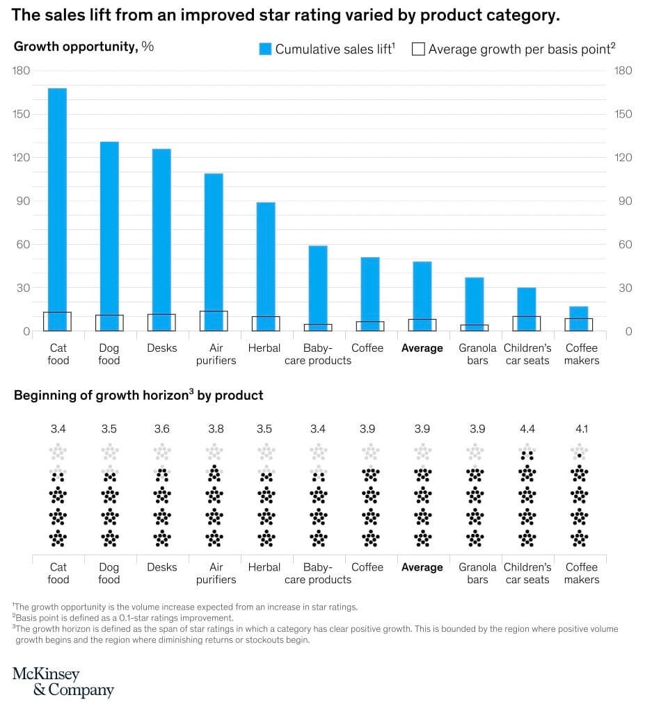 El articulo de McKinsey, “Crecimiento de cinco estrellas: uso de calificaciones en línea para diseñar mejores productos”, ayuda a ver las reseñas desde otro punto de vista.