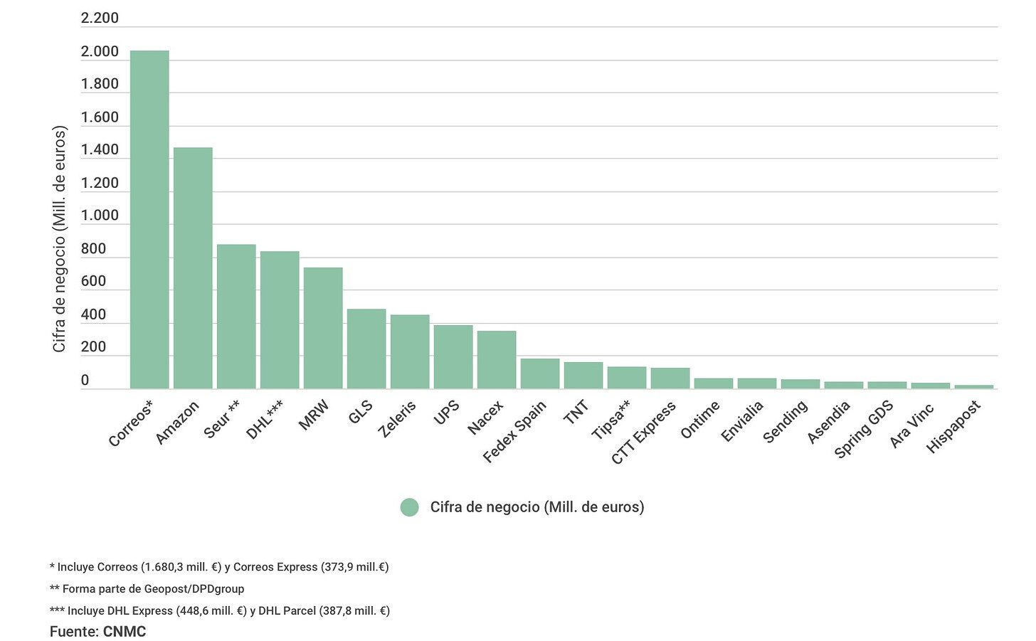 Más de 1.000 millones de envíos de paquetería y mensajería.