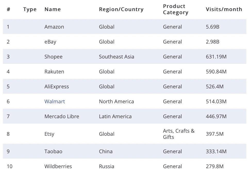 📉Esta semana también se publicaba el The world’s top online marketplaces 2022 de Webretailer. Un informe que muestra el ranking de Marketplace por país y sector.