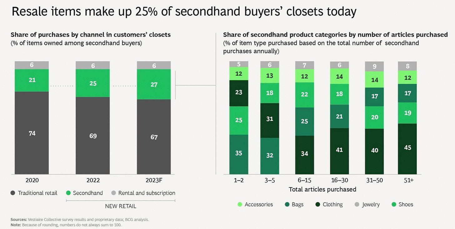 Si te interesa el tema te dejo el informe (las slides no tienen desperdicio, es donde hay mas info) “The Impact of the second hand on fashion retailers” de Boston Consulting Group en colaboración con Vestiaire Collective.