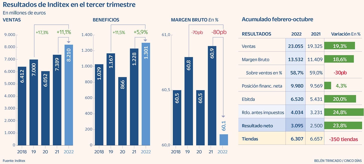 📉 Inditex presentaba los resultados financieros del Q3 2022. (Nota oficial). Pasa a ser su mejor tercer trimestre en ventas y beneficios, pero con un menor crecimiento.