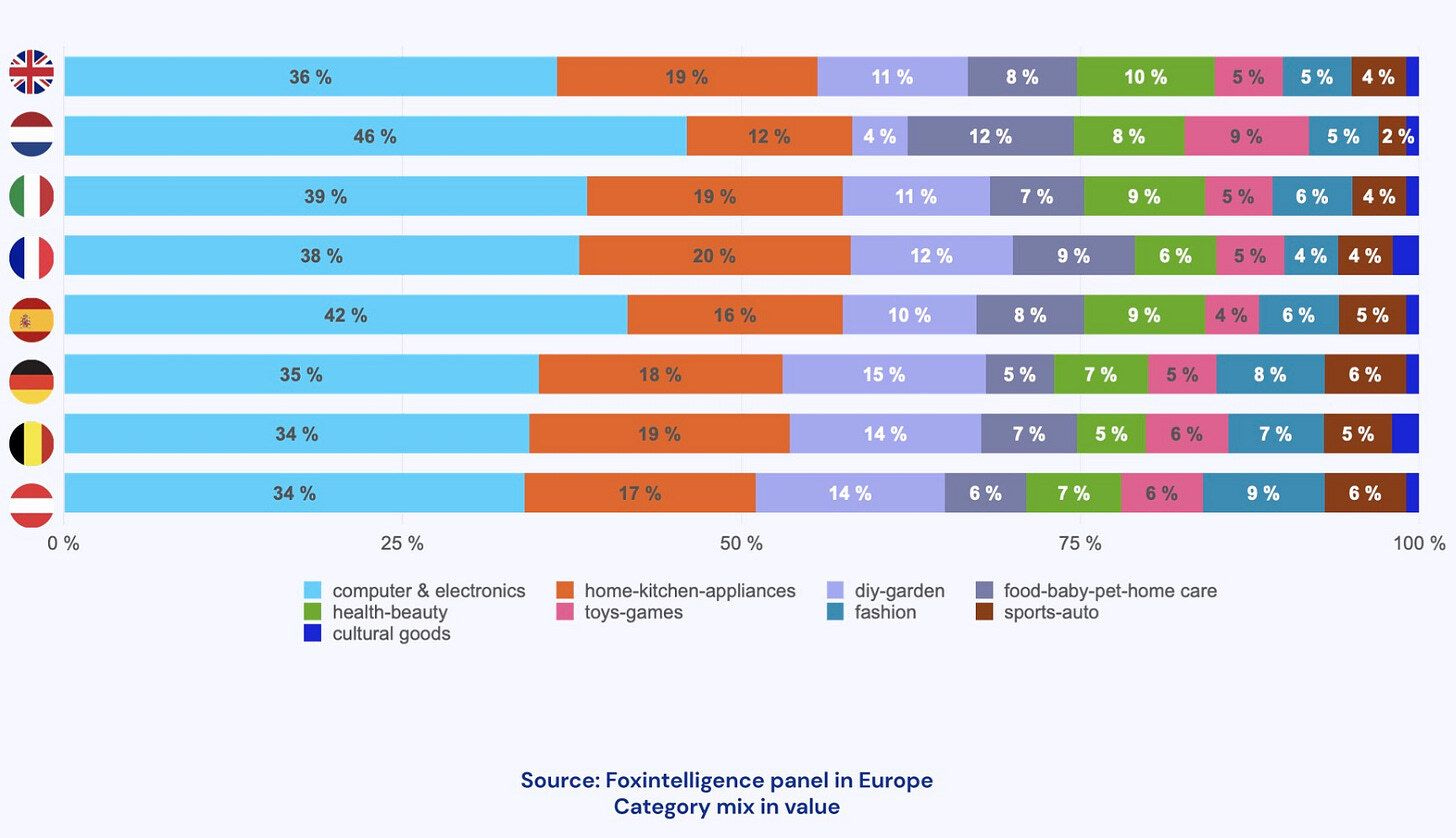 Atendiendo a los datos del E-commerce in the Post-Pandemic Era, un report de CBRE, el 72% del gasto online en Europa se centra tan sólo en 6 países.