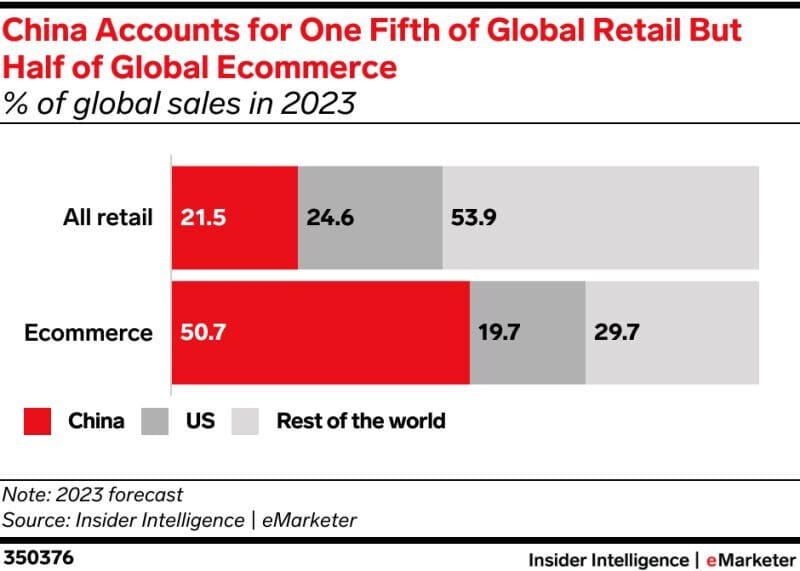 No tengo ninguna duda que este mercado va a cambiar mucho, la superioridad y madurez del online a nivel global del eCommerce Chino se puede ver en la siguiente gráfica.