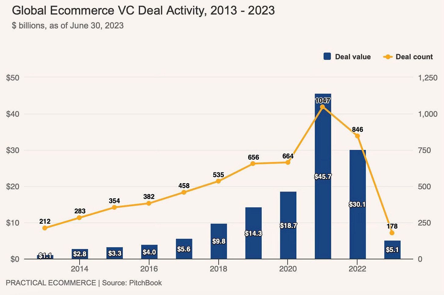 📉 Un resumen de la actividad del VC en eCommerce 2022, 2023.