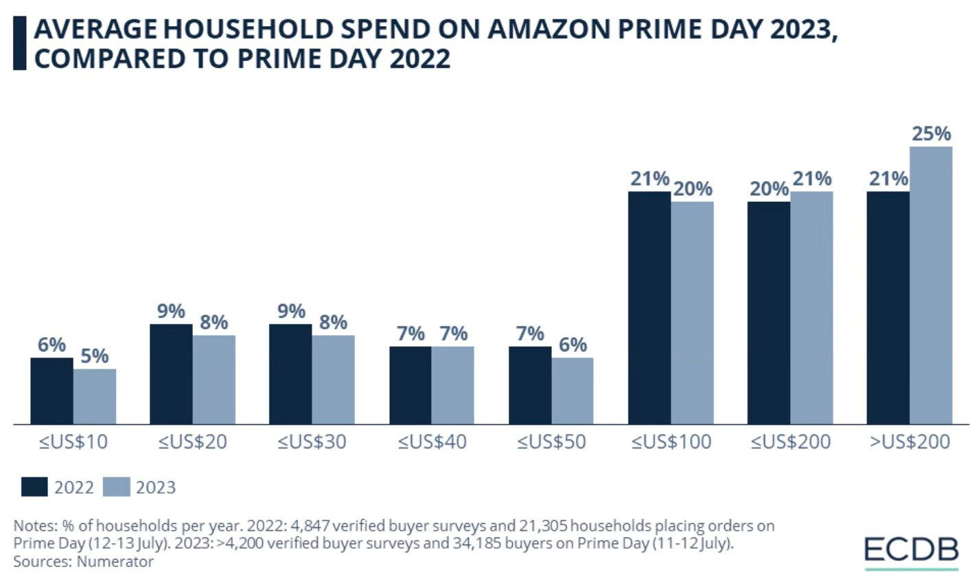 Los patrones de gasto de los consumidores en el Amazon Prime Day ¿Que ha cambiado en el 2023 Vs 2022? (Hay mucha mas info interesante en el link).