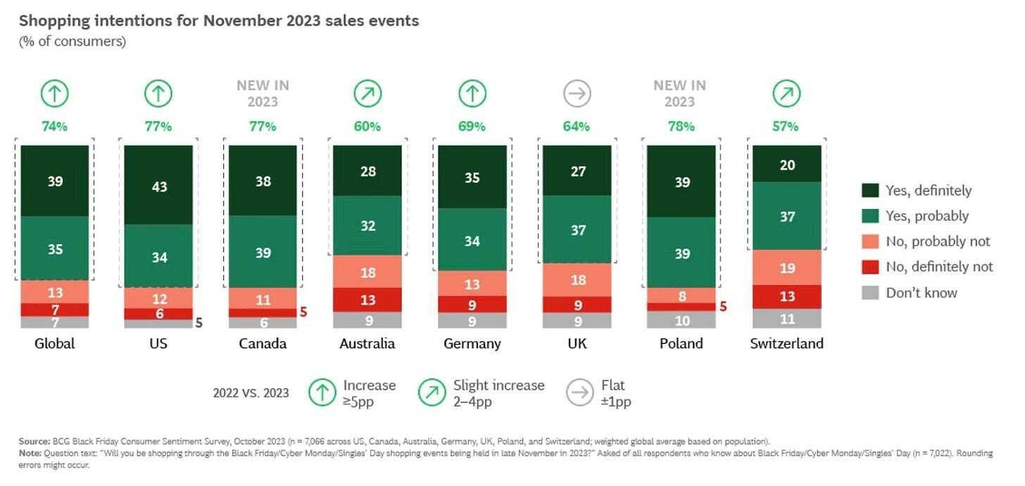 El report “Bargain Hunters Set to Drive Record Black Friday” de BGC nos muestra lo que se espera del Black Friday a nivel global. (muchos datos dentro del report por si te interesa profundizar).