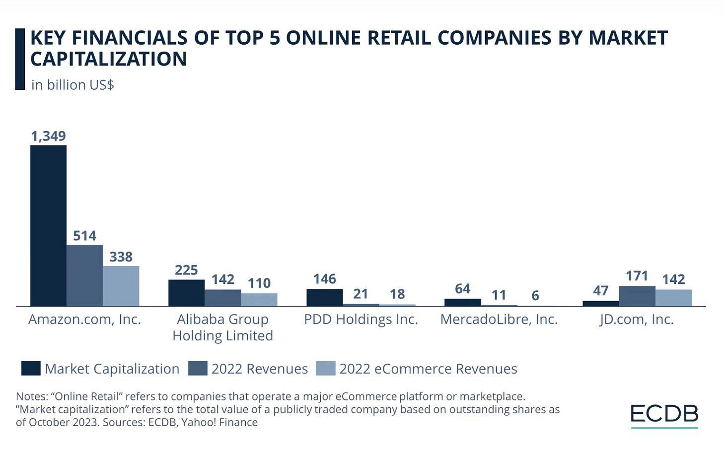 📉 Este es el Top 5 Global de los Retailers online y su Market Value, GMV & Revenue.