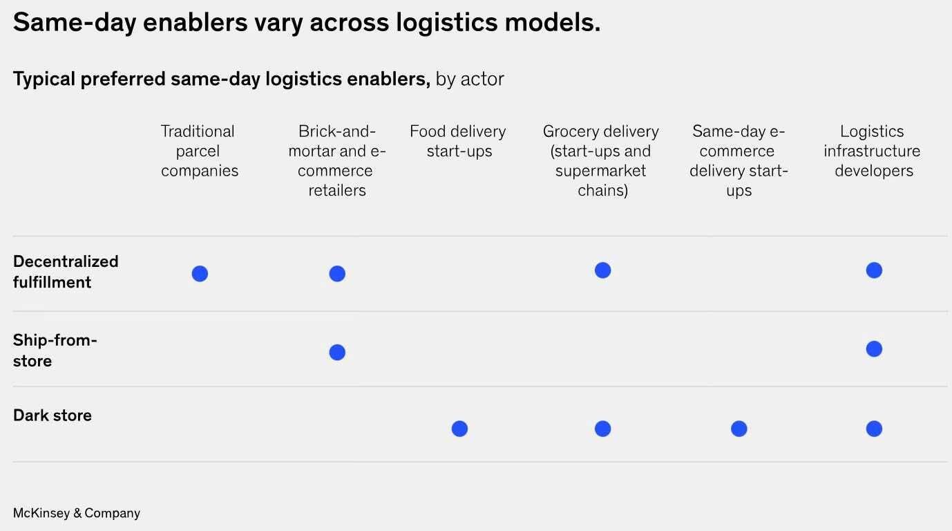 🚚 Por lo que les leo, seguro que Juan Sandes y Carlos Zubialde coinciden en muchas de ellos. El report “Watching the clock” de McKinsey para comprender los items que afectan y modulan las entregas Same Day.