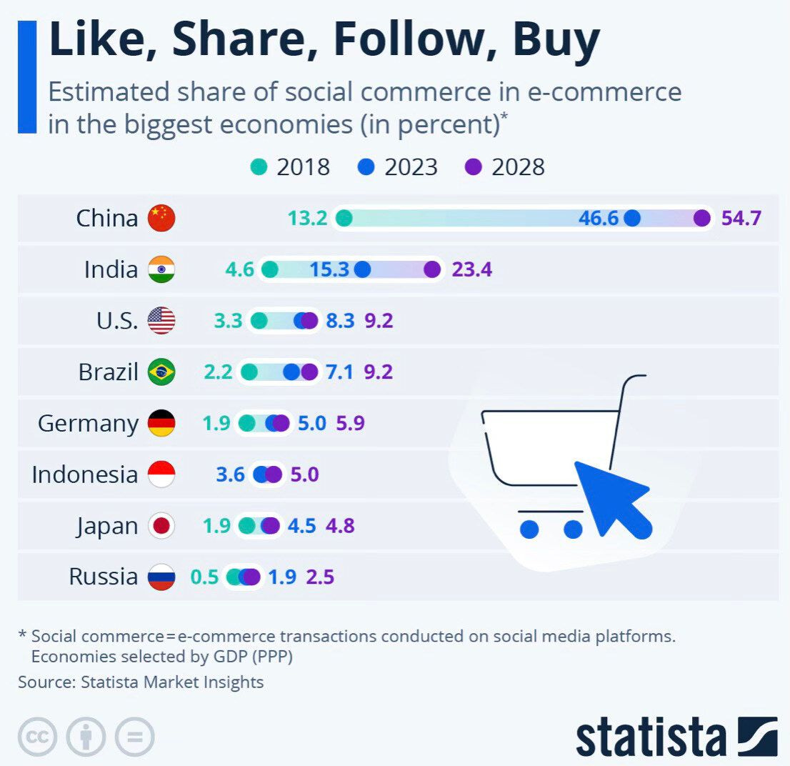 📱Una infografía para conocer donde es mas importante el Social Commerce y algunos datos clave:
