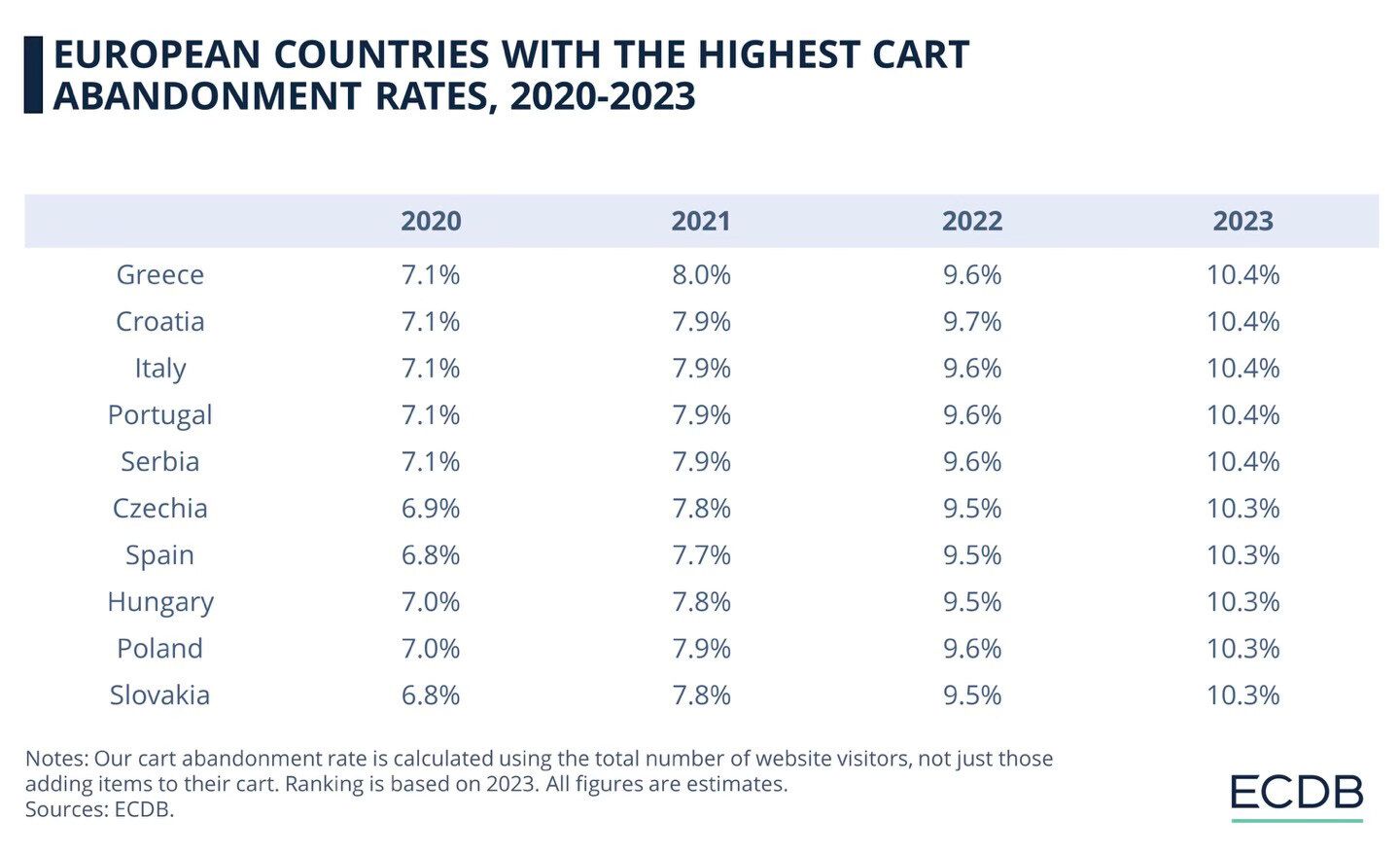 📉 Un buen análisis para conocer la Tasa de abandono del carrito en Europa: Estadísticas del país, envío y comportamiento del consumidor.