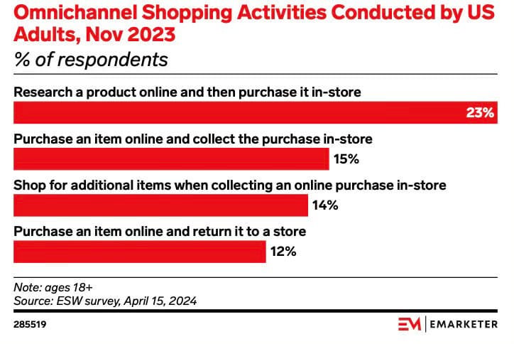 Casi una cuarta parte de los consumidores investigan productos online antes de comprarlos en la tienda.