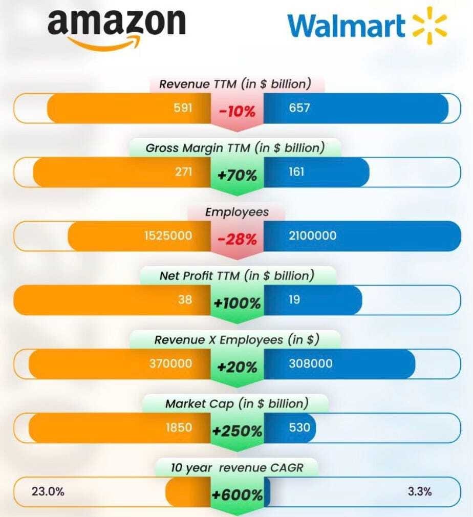 Interesante infografía y data de Joshua Novick que muestra lo cerca que ya está Amazon de superar a Walmart.