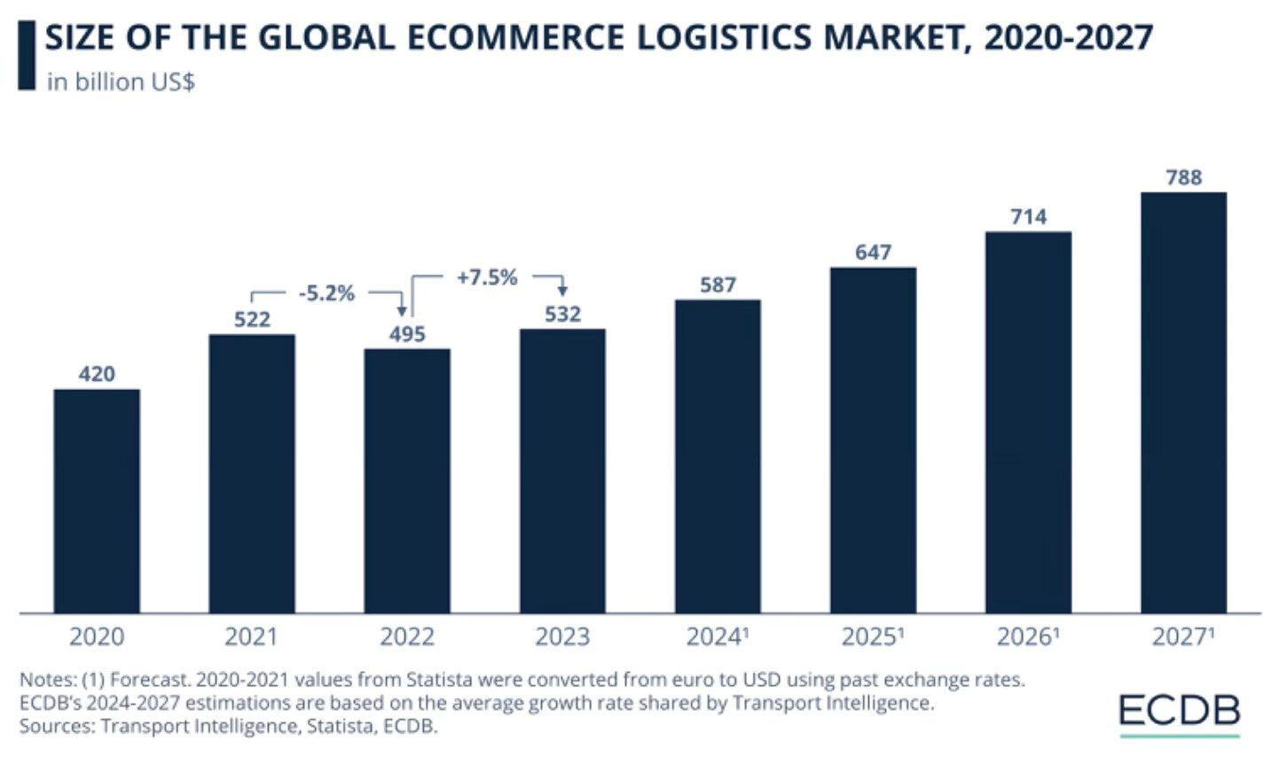Se espera que la logística Global de eCommerce alcance unos ingresos de $788 mil millones en 2027.
