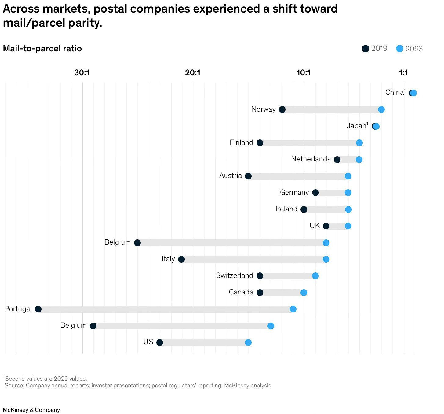 🎯McKinsey trata en el report “Preparing post for further parcel opportunities” cómo debería ser la adaptación de las empresas postales al auge del eCommerce y la disminución del volumen de correo tradicional.