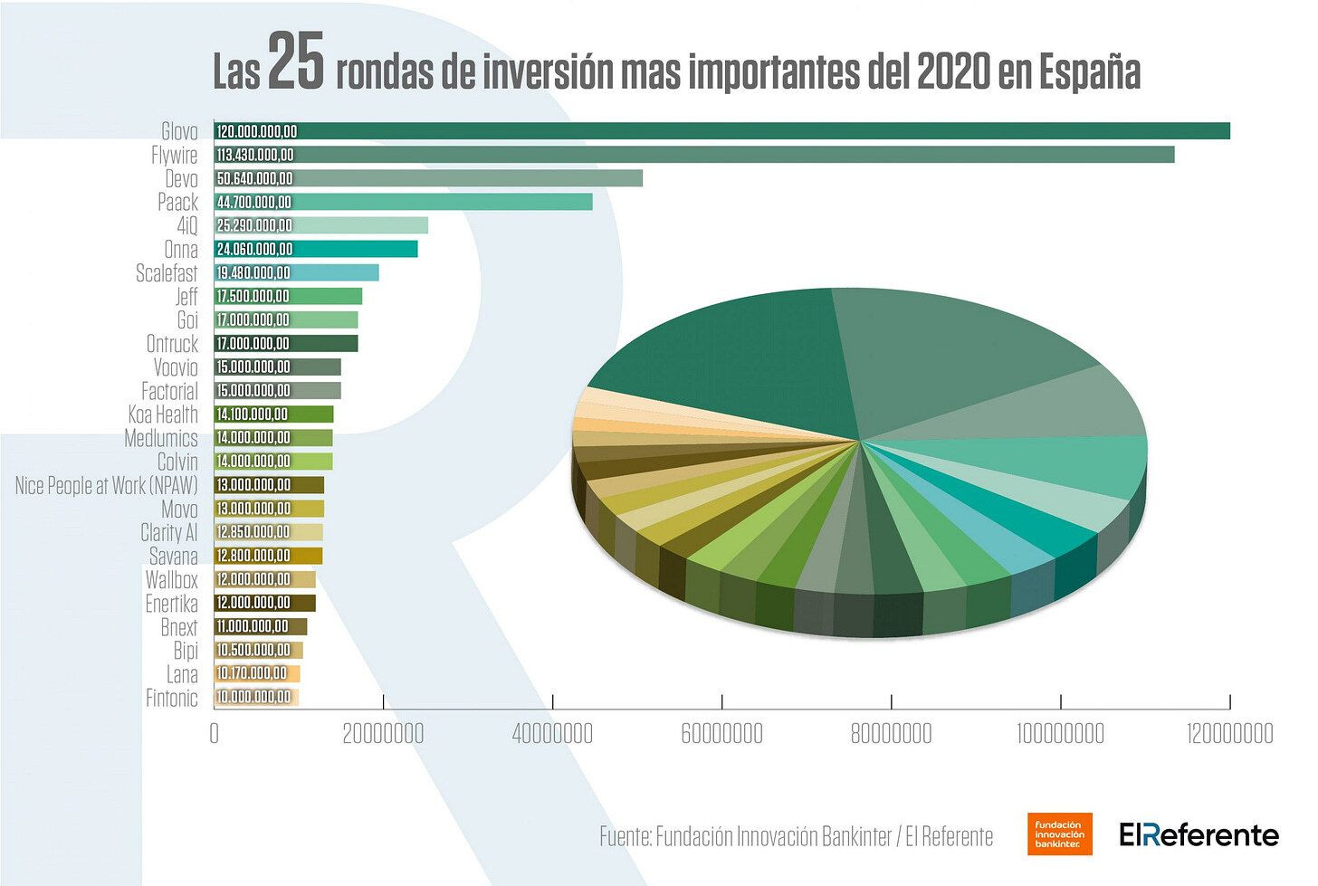 Un resumen de las 25 rondas de inversión más importantes del 2020 en España, donde se alcanzaron los 1.101 millones de euros, este es el Ranking del top25 respecto a las principales rondas de inversión de 2020.