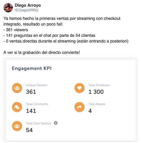 A pesar de que el resultado en el cierre de la emisión no fue el deseado para Diego Arroyo, su CEO, las horas posteriores si lo fueron. Aunque ayer comentaba que no estábamos del todo contentos con el resultado del streaming (especialmente a nivel viewers), si que es cierto que inmediatamente después de que terminara (de las 20h a las 23h) se nos dispararon las ventas.