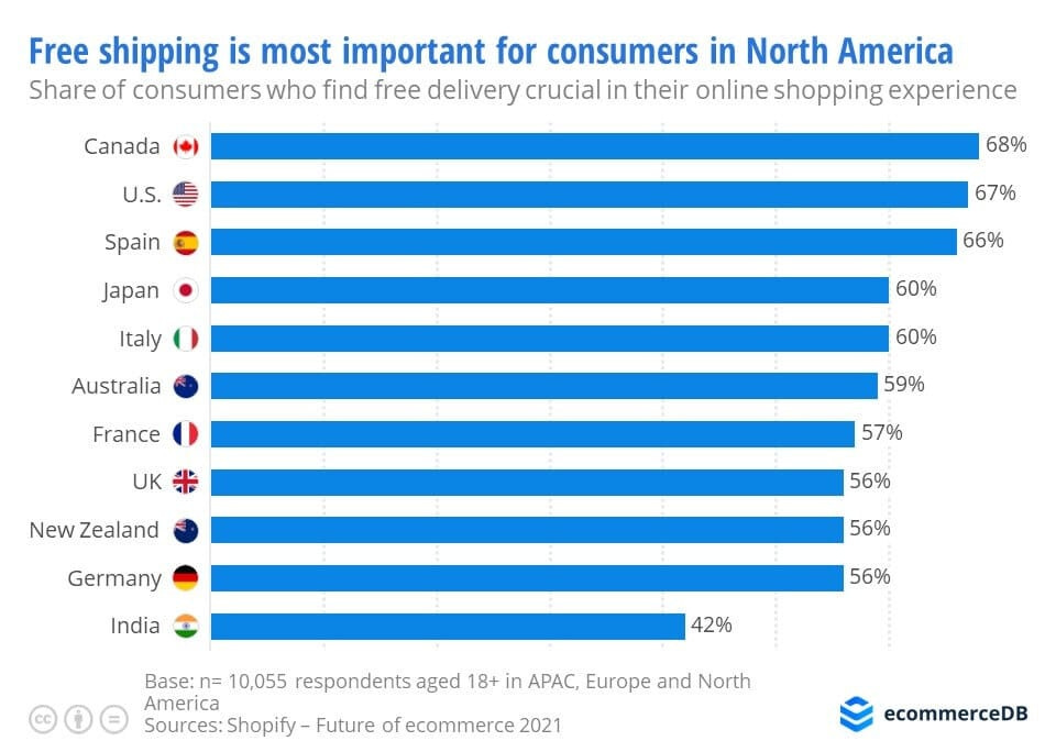 Un dato significativo en la relación entre la logística y el eCommerce es este Ranking de países en sensibilidad ala entrega de sus pedidos online. Señalar que España es el tercer país del mundo más sensible a los gastos de envío.