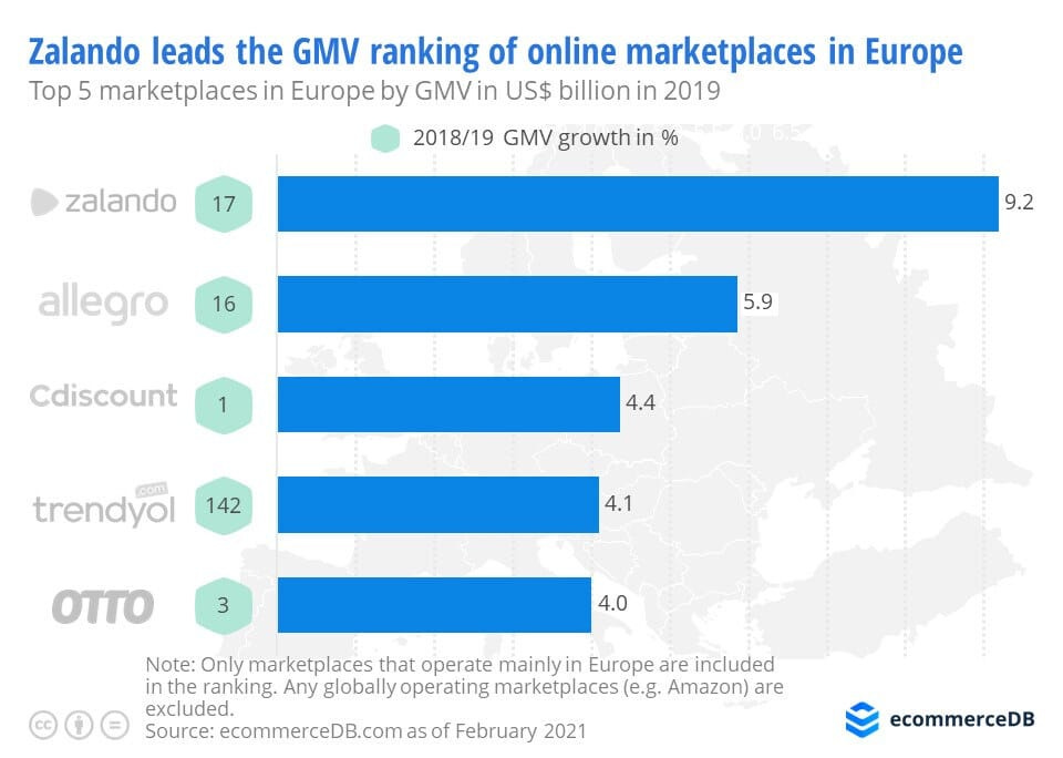 Los analistas de ecommerceDBcom han compilado un informe completo sobre los Marketplace online B2C que da como resultado este Top 5 Marketplaces en Europe.