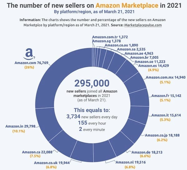 Amazon en Europa da la bienvenida a 1.461 nuevos sellers por día. Por si alguien dudaba del éxito del modelo de Amazon en Europa, a recibido 115.453 nuevos vendedores este año. Con esta tendencia se alcanzaría más de medio millón a finales de este año.
