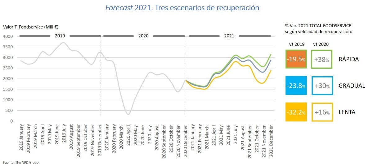 Edurne Uranga mostraba tres escenarios con evolución del foodservice en 2021, donde cabe destacar: