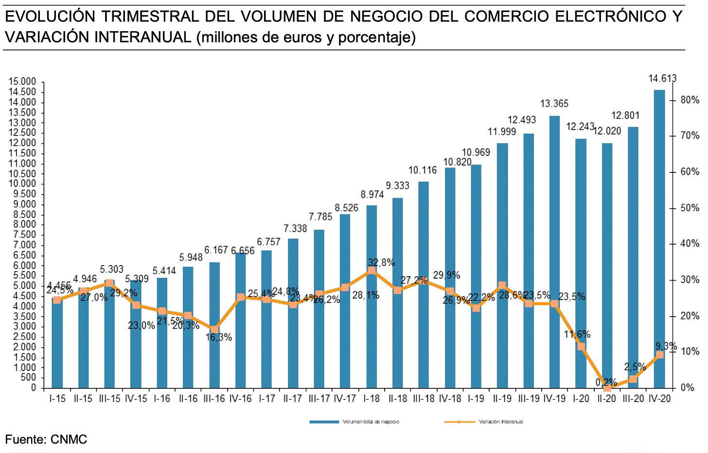 📉 La semana pasada se publicaba el informe de la CNMC sobre el consumo online. El gran titular es El eCommerce marcó un nuevo récord y superó en España los 51.600 millones de euros en 2020, un 5,8% más que el año anterior.