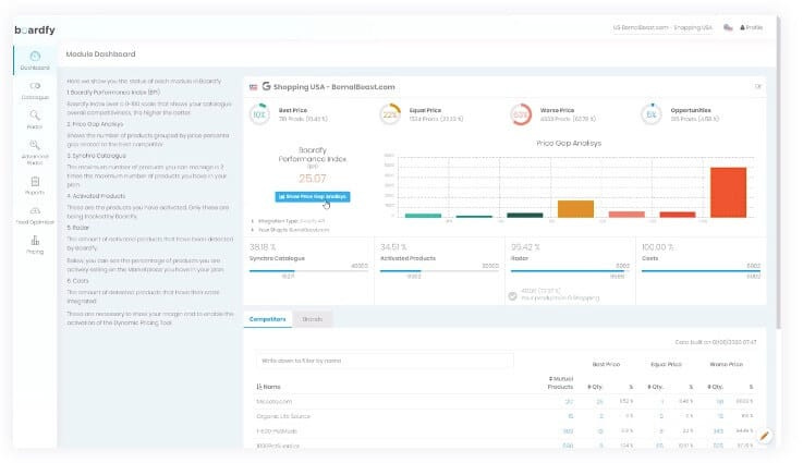 Boardfy te permite monitorizar a tus competidores o distribuidores, realizar cambios de precios de forma automática, optimizar tus campañas de Google Shopping y mucho más.