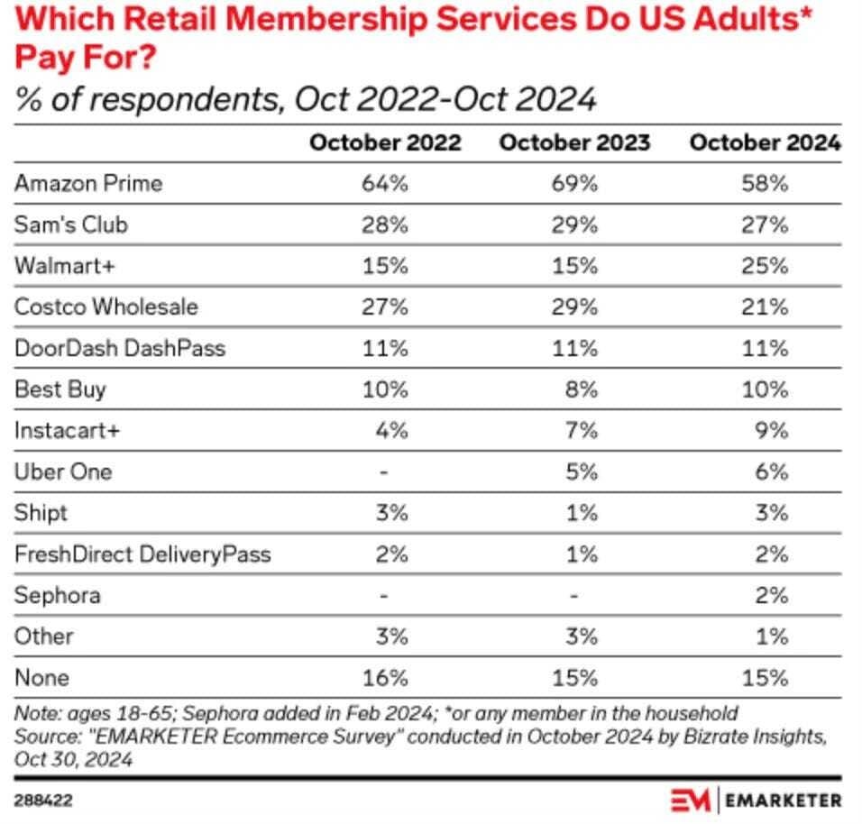 ⭕️ En 2025, los ingresos por membresías online en EE.UU. alcanzarán un récord de $46.39 mil millones. Los programas de fidelidad y membresías no relacionados con Amazon buscan innovar para competir, mientras Amazon fortalece su posición, especialmente en el sector de alimentación. Tres previsiones:.