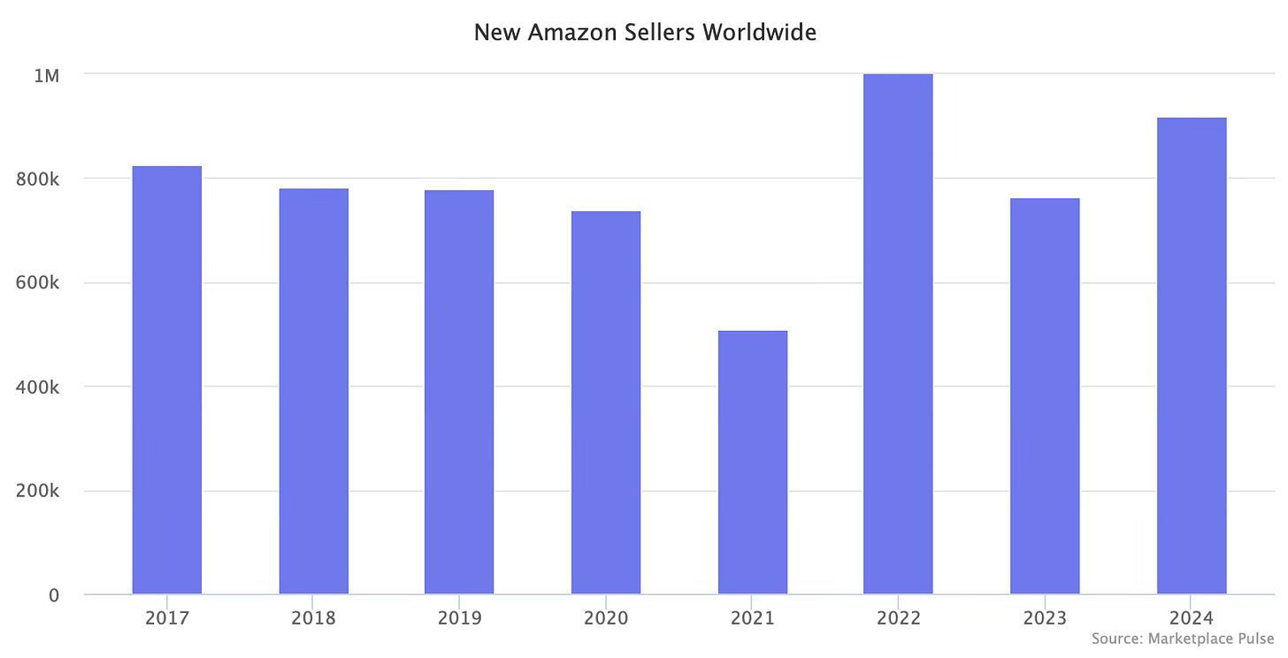 Amazon atrajo a casi un millón de nuevos sellers en 2024, reflejando un continuo interés en su plataforma a pesar de un crecimiento más lento, mayor competencia y reglas más estrictas para lograr rentabilidad.