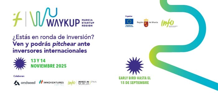 Tu oportunidad está a punto de despegar: ¡vuelve Waykup Forum! El 13 y 14 de noviembre en el Auditorio Víctor Villegas de Murcia, tus ideas se encuentran con la inversión que necesitan.