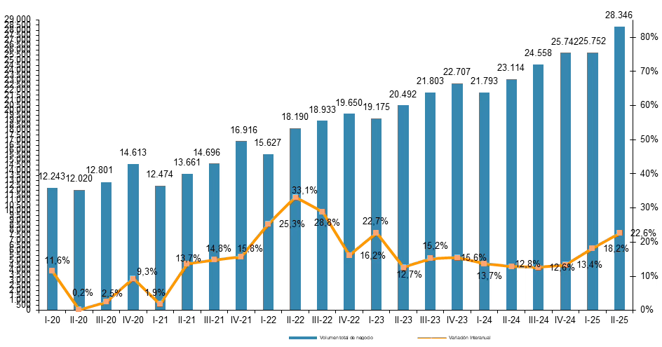 La CNMC acaba de publicar los datos correspondientes al segundo trimestre de 2025 y el canal no da señales de que vaya a desacelerar: 28.346 millones de euros en solo tres meses, creció un 22,6%.