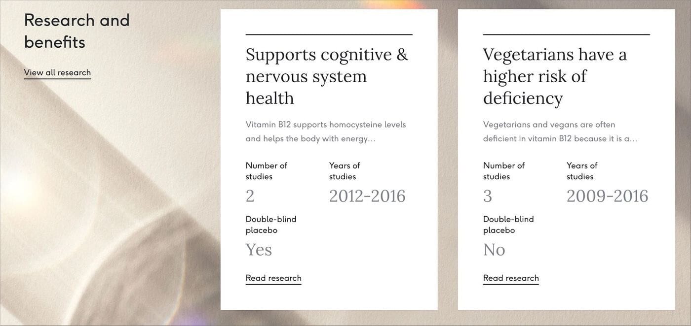 Otro factor novedoso es la manera en que describen cada recomendación que te hacen: cada producto recomendado es acompañado de una explicación simple y comprensible, junto con el grado de confianza que tienen en ese producto; no todos los productos que venden tienen la evidencia científica o uso histórico… y te lo dicen abiertamente.