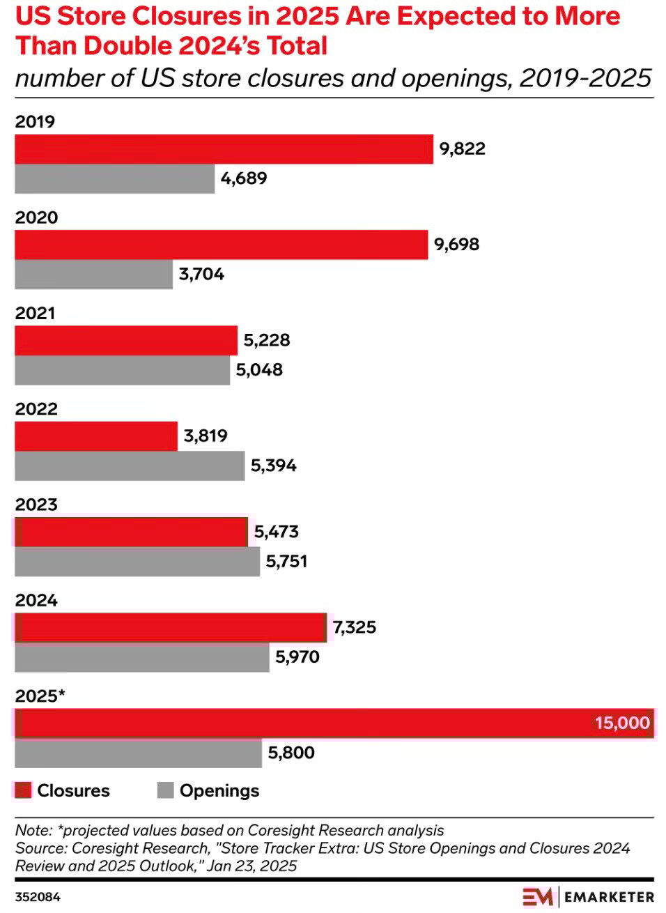 🎯 Esta semana hacía un resumen con los principales movimientos que están produciendo a nivel global en el Retail. Lamentablemente esto repercute en el cierre de tiendas y la consecuente pérdida de puestos de trabajo. La situación en EE.UU es preocupante, principalmente afectada por: