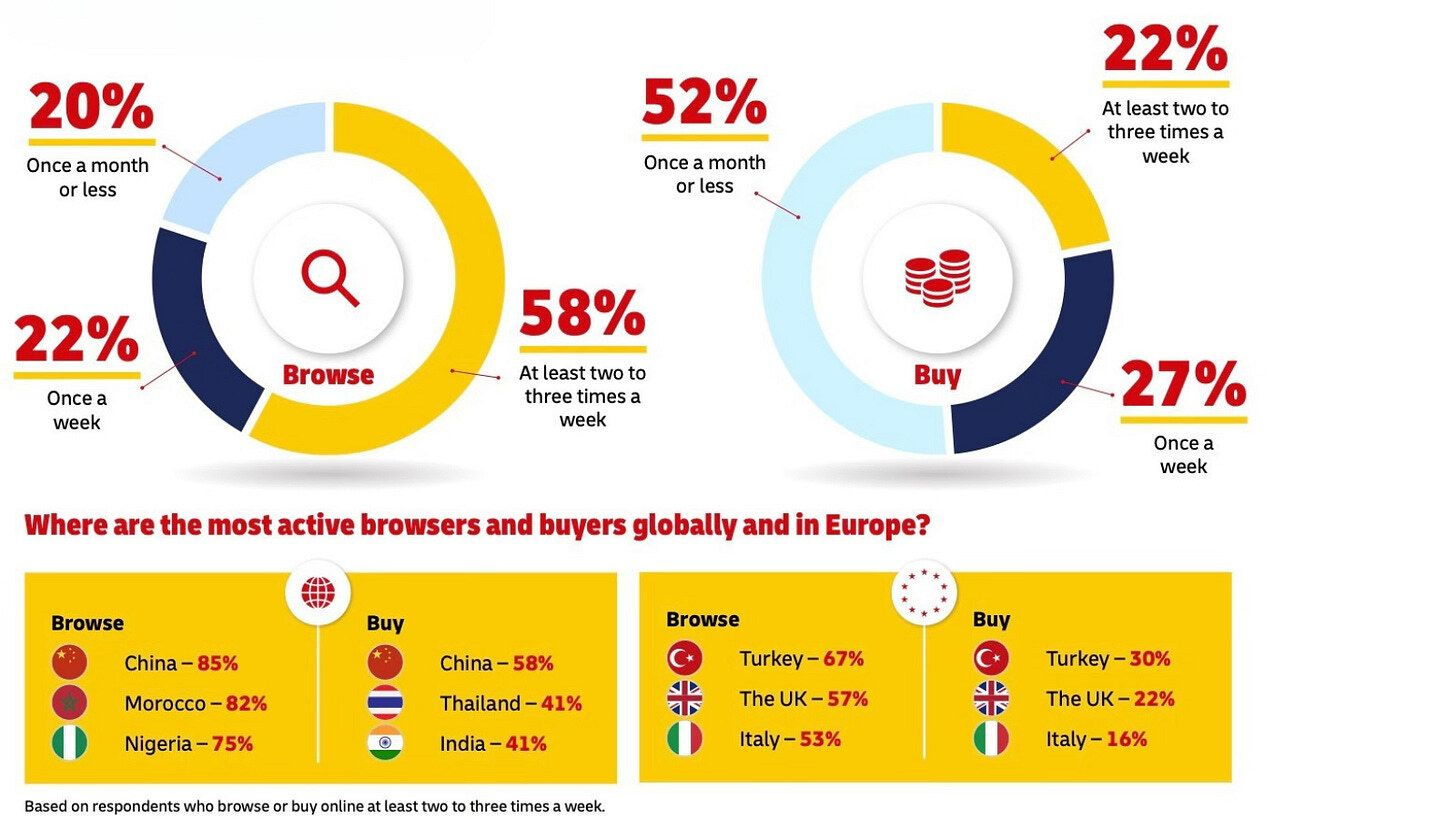 📉 DHL lanzó su informe anual “E-Commerce Trends Report 2025”, que analiza cómo compran los consumidores digitales en 24 países. En un entorno en rápida evolución, donde el 91% compra desde su smartphone y el 83% de los Millennials usa apps de tiendas, entender cómo compran los usuarios digitales es clave para optimizar la experiencia y convertir visitas en ventas.