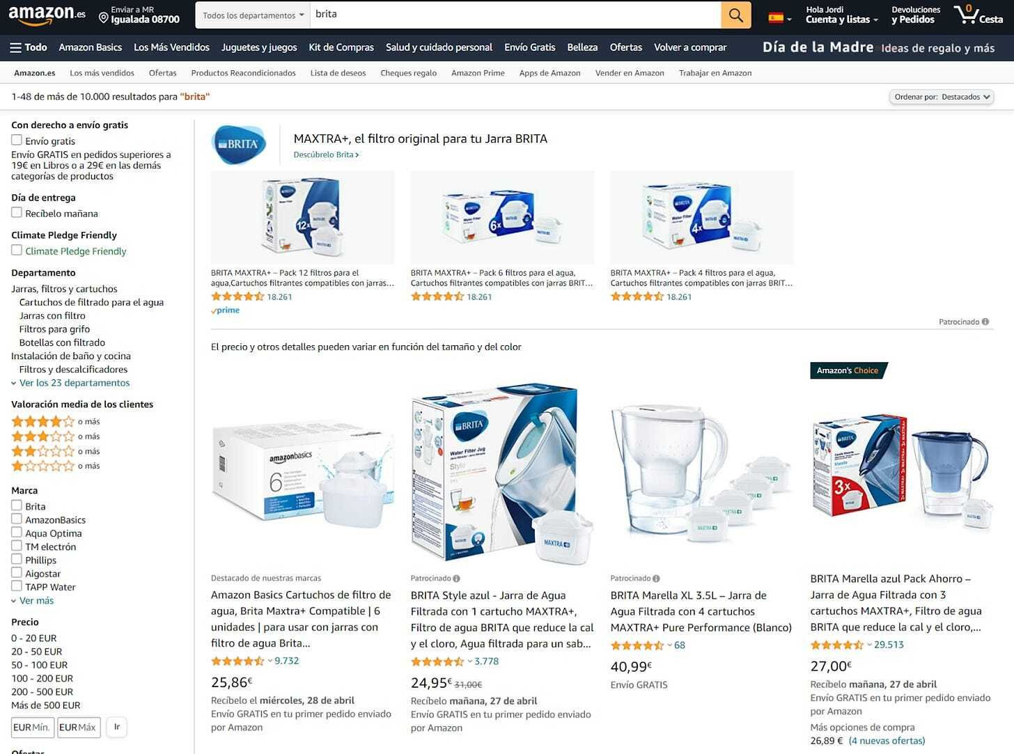 Siempre pongo el mismo ejemplo, pero es que es heavy el tema. Buscad “Brita” en Amazon.