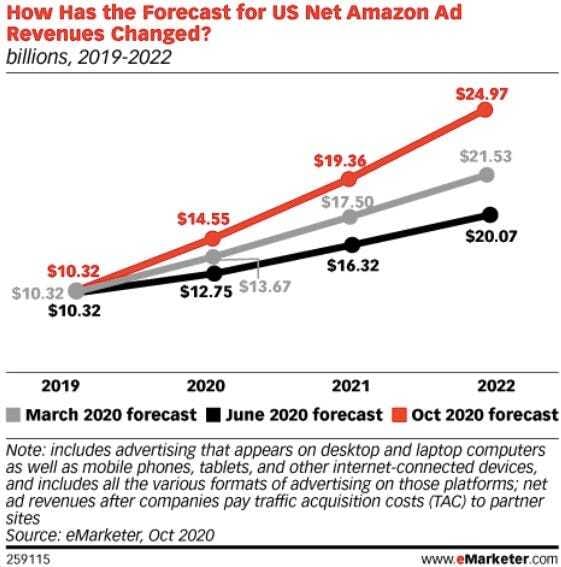 Con permiso de AWS, la publicidad se convierte en una de las fuentes de ingresos mas importantes para Amazon. Más de 14 mil millones de dólares en ingresos netos.