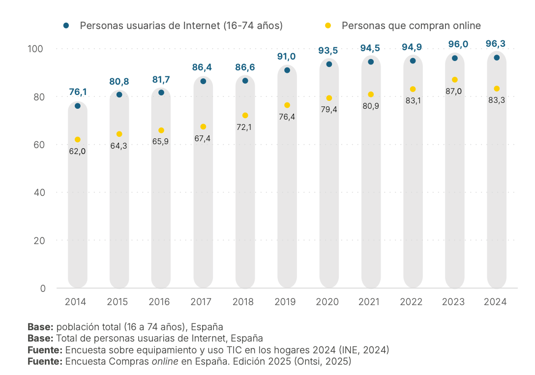 El 83,3% de usuarios compra online, menos que en 2023, pero con 2,5 millones de nuevos entrantes que empujan el volumen.