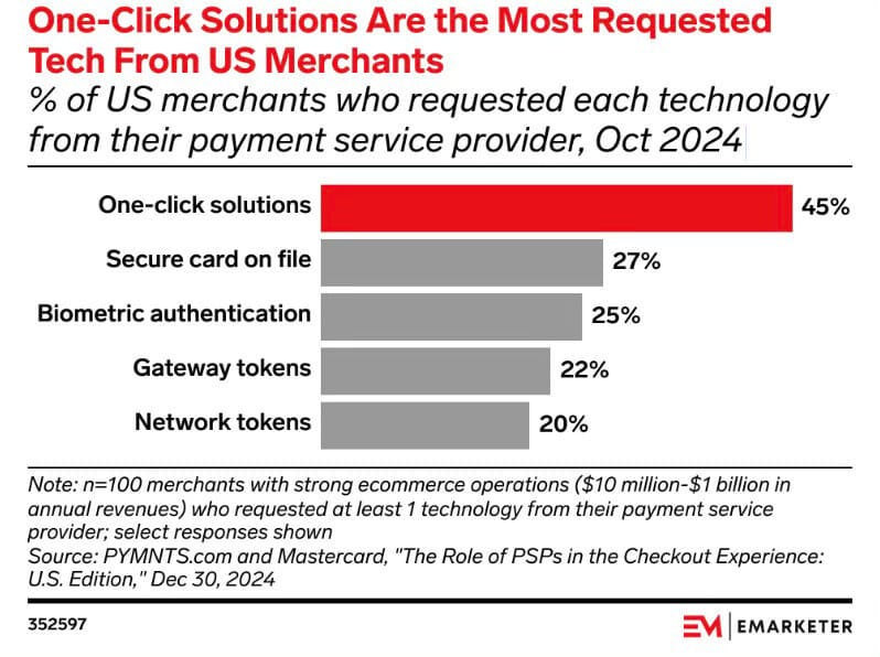 ⭕️ El 45% de los eCommerce prioriza soluciones de pago en un clic para aumentar conversiones, según nuevas tendencias del sector centradas en mejorar la experiencia de compra.