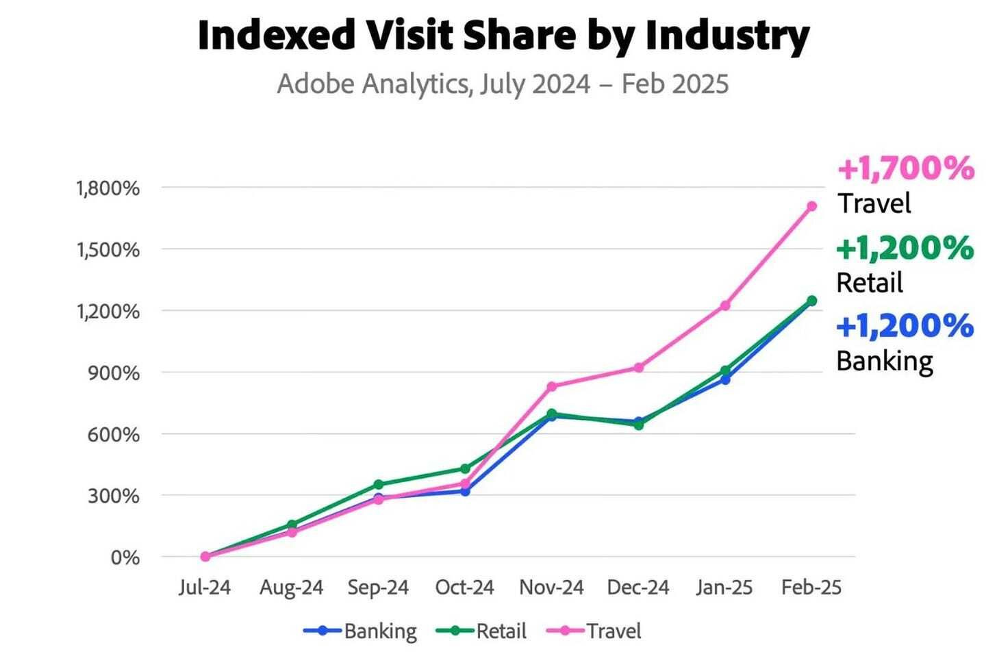 Para entender lo que puede significar, me viene al pelo esto que publicaba Corti: “El tráfico a tiendas online desde fuentes de Inteligencia Artificial Generativa ha crecido un 1.200% en solo 7 meses”.